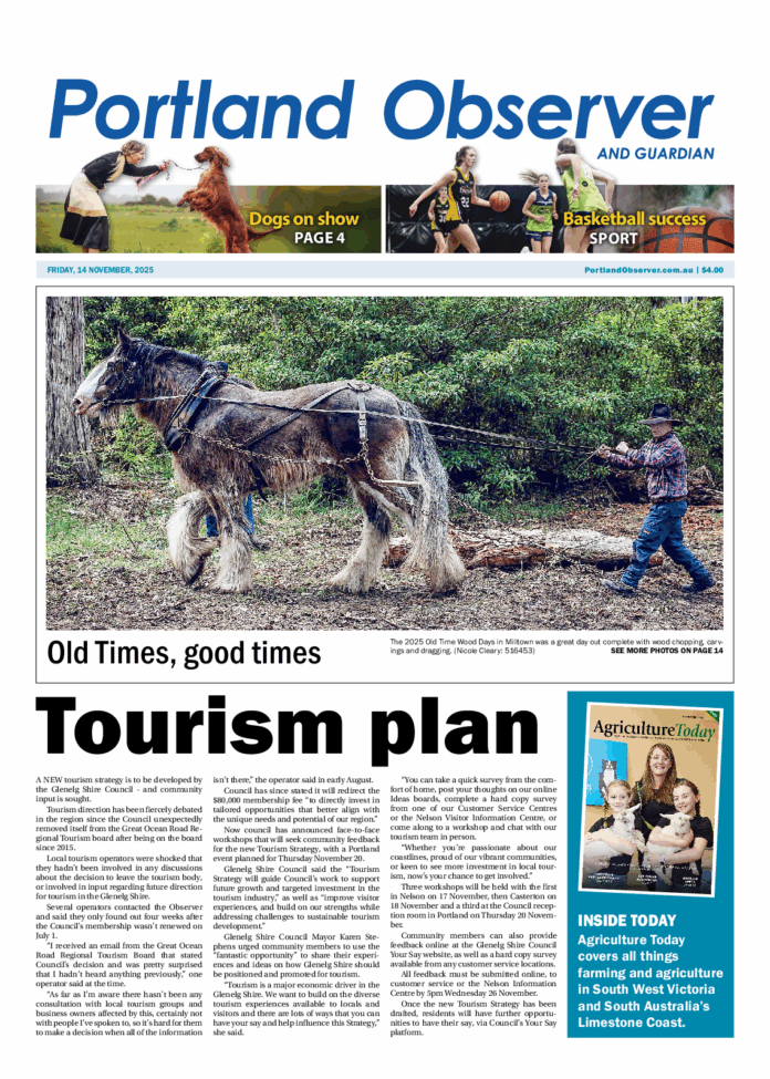 Portland Observer – 14th November 2025 Subscribe or Login to see the rest of the content. Username Password * Remember Me Forgot Password News Old Times on display 15/11/2025 This year Milltown's annual Old Time Wood Days held its 30th event, with a weekend filled with old machinery, slow-cooked meats, wood carving and... Heywood Golf Club in full swing 15/11/2025 THE Heywood Golf Club held the first round of the mixed championships last Saturday as an aggregate stableford event and the days winners were... Injury hinders Woodall at PBR grand finals 15/11/2025 HEYWOOD bull rider Sam Woodall recently competed at the Professional Bull Riders (PBR) Australia grand finals in Townsville but was impacted by injury. While he...
