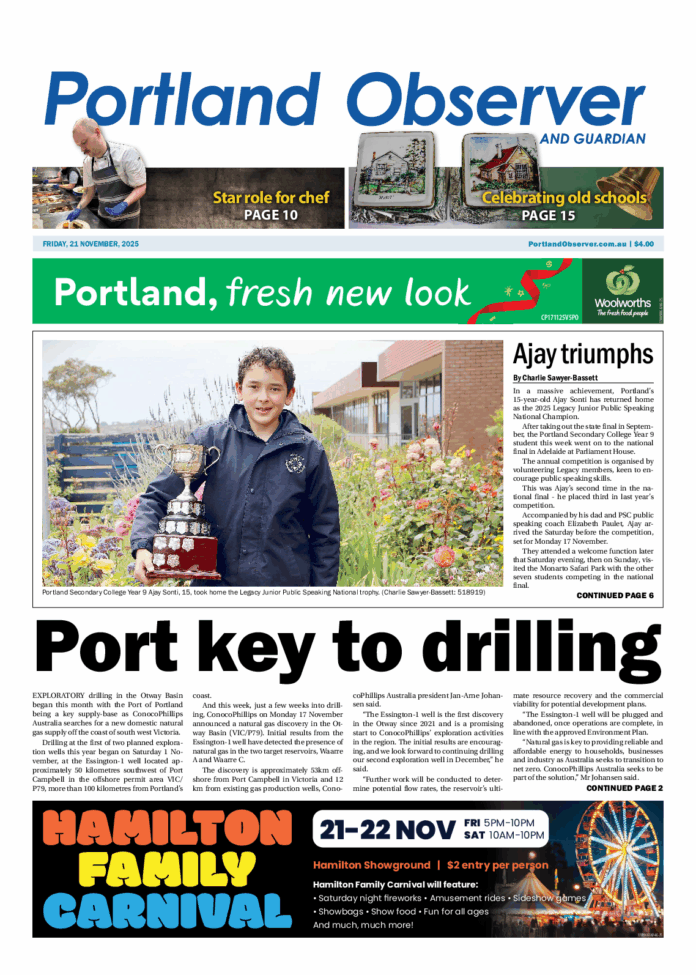 Portland Observer – 21st November 2025 Subscribe or Login to see the rest of the content. Username Password * Remember Me Forgot Password News Lawn Red, Yellow stamp their authority 21/11/2025 LAWN Red has recorded a big win in round five of the Surry District Tennis Association defeating Lawn Purple 4-45 to 2-36. After an even... Stephens re-elected for third term 21/11/2025 NEWLY re-elected Mayor Karen Stephens says “our future is really bright” as she enters her third consecutive year as mayor of the Glenelg Shire. All... Spring tournament success in Heywood 21/11/2025 THE Heywood Golf Club held its Spring Tournament from November 11-16 with a big turnout across multiple days of play. The first event on...