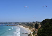 GLIDERS soared high above a packed Nuns Beach as local residents and visitors made the most of a sun-soaked long-weekend here in Portland.