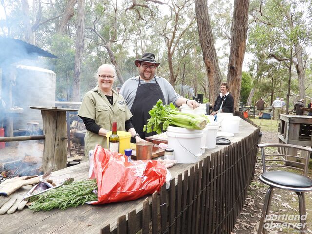Michelle and Brett Duyvestyn, the daughter-in-law and son of bush block owners and event organisers Andrew and Christine Duyvestyn, start preparing a feed for the hungry eventgoers of a recent Wood Days. (files)
