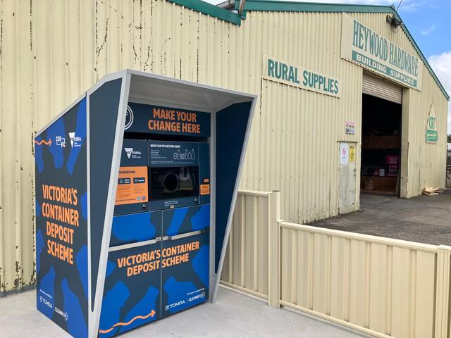 The reverse vending machine has been relocated to Heywood Hardware.