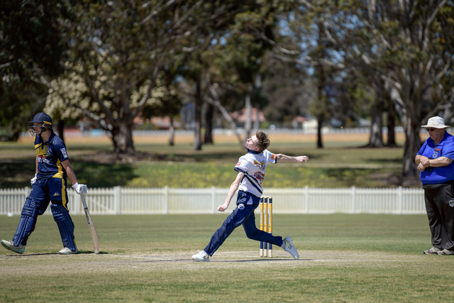 Ryan McGregor produced an explosive spell of bowling last weekend, finishing with figures of 3-30 in the Drews loss to South Portland. (Lara Fitzpatrick: 511343)
