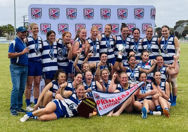Casterton-Sandford celebrates its Limestone Coast Women's Football premiership, after a thrilling win over Mundulla. (Supplied)