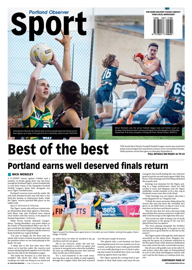 Looking back: September 29/12/2025 Facebook Take a look back at some of our backpages from 2025, reflecting sporting highlights in Portland, Heywood and surrounds. Subscribe or Login to see the rest of the content. Username Password * Remember Me Forgot Password